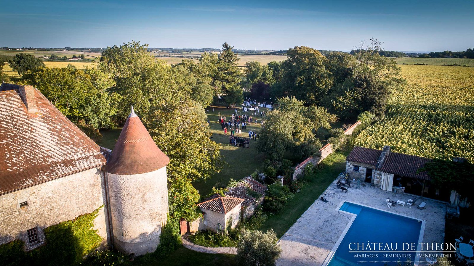 Célébrez votre mariage au Château de Théon. Découvrez le château en visite virtuelle 3d bien installé dans votre fauteuil, l'espace Pool-House pour organiser votre Brunch, ses hébergements, la grande salle.